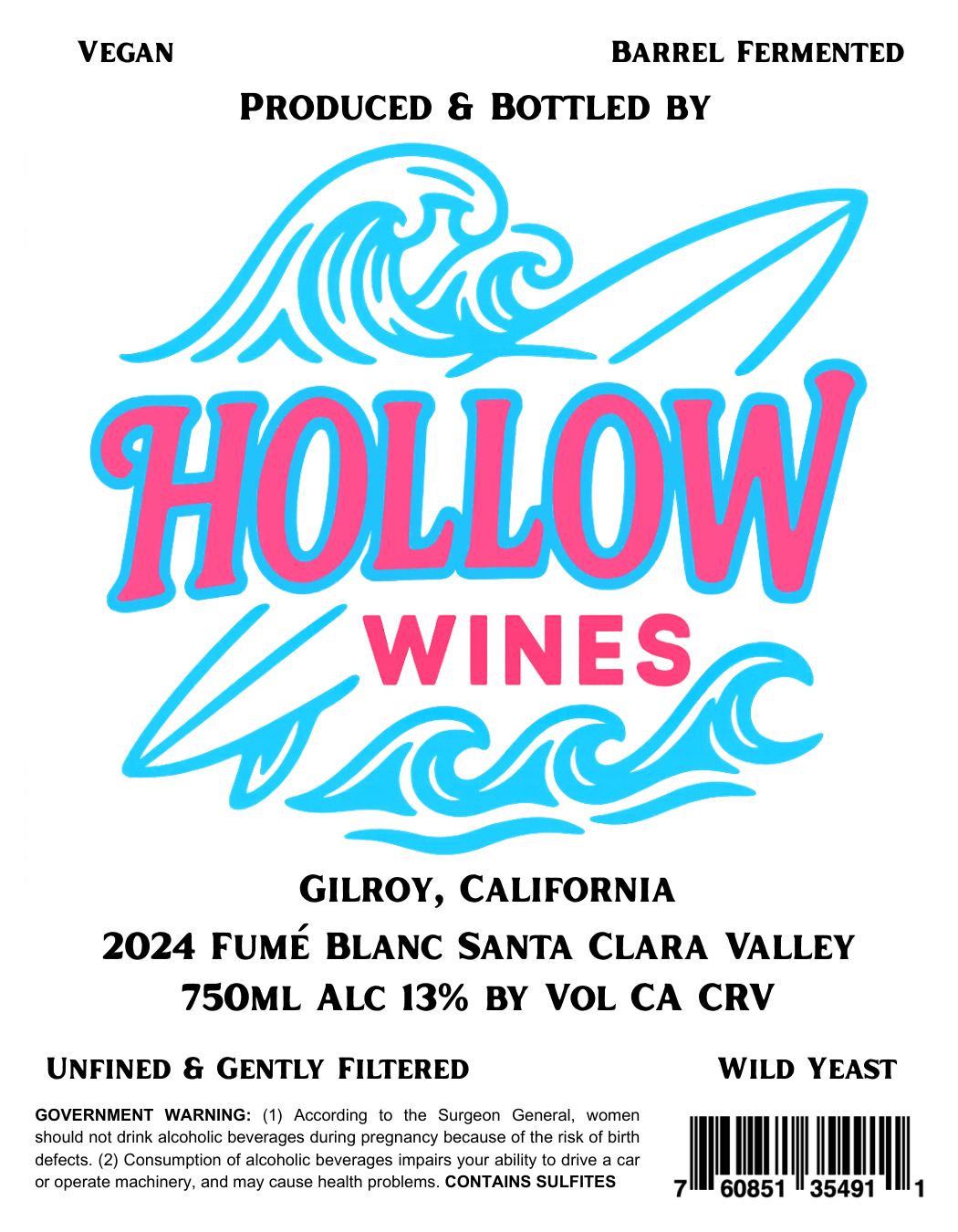 These grapes were picked at 23 Brix, where they were subsequently pressed directly into a tank. They were settled for a day before being racked into neutral French Oak Barrels. They fermented entirely in barrel before being racked off secondary lees and refilled into French Oak barrels, where they aged for 11 months, completing both primary and secondary fermentation in barrel. Wine was gently filtered using coarse filtration and bottled on 8/27/2025.
